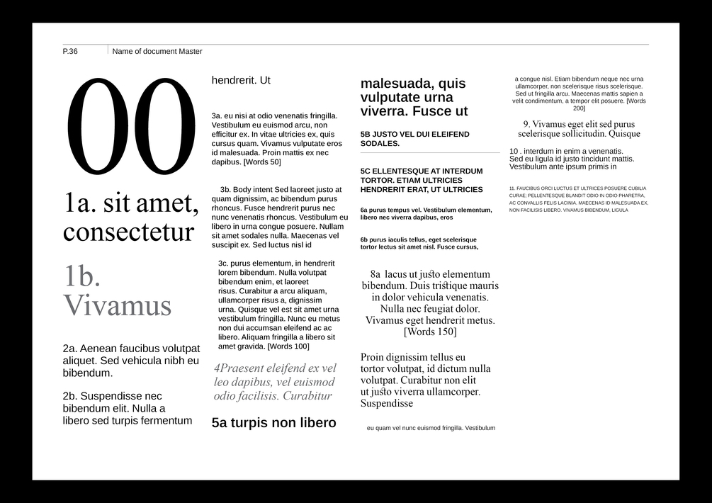 - Fully set up Master A grid and Master B grid, both with a 10pt/12pt baseline grid for text.