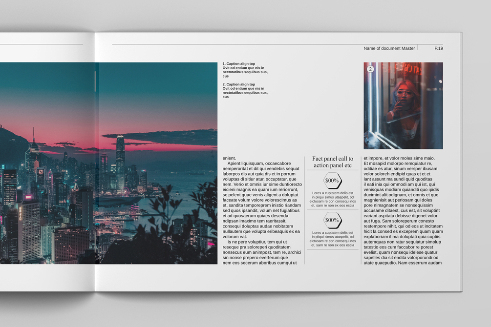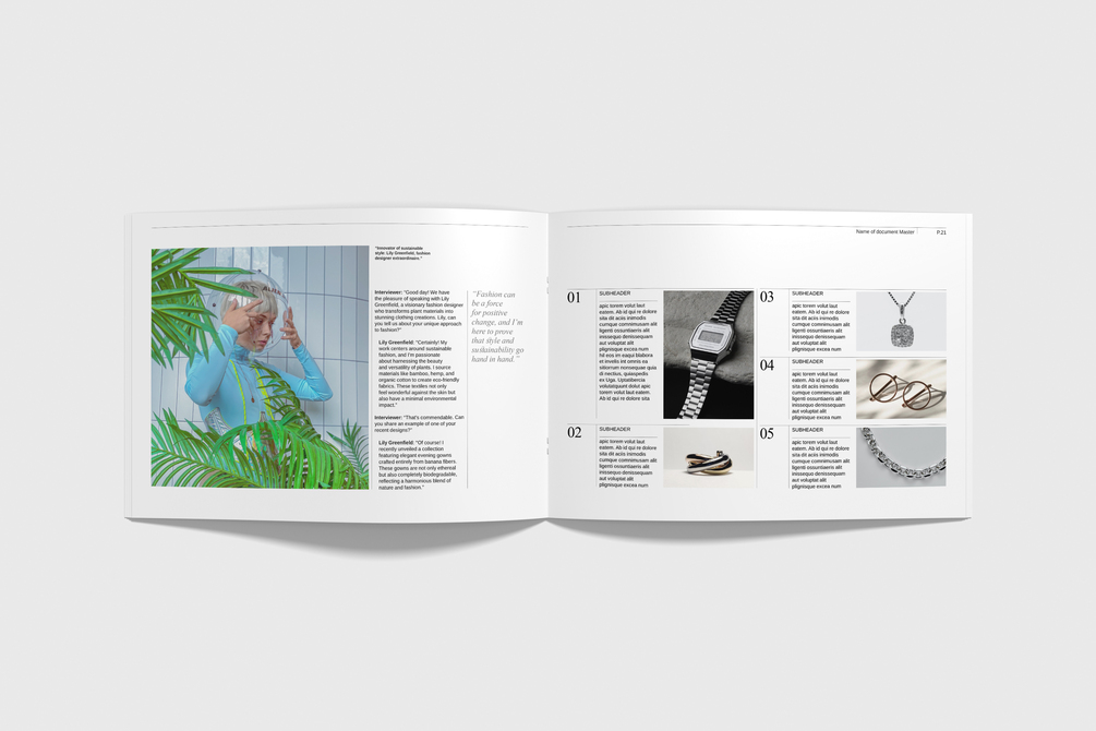 - Over 30 pages featuring a wide range of style ideas, including title pages, text-heavy layouts, image grids, product pages, spreads, number panels, and more, which can be used right out of the box.